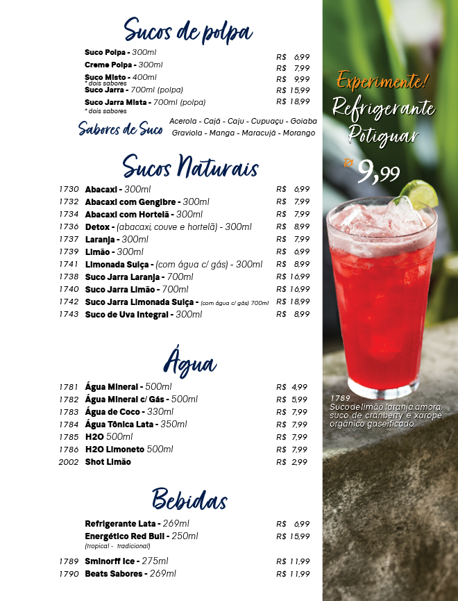 At Potiguar Menu, located in the heart of Águas Claras, Brasília, you’ll find a delicious blend of Brazilian flavors and unique culinary creations. From savory dishes that highlight the richness of local ingredients to hearty meals that promise to satisfy, each item on the menu offers something for every palate. Whether you're in the mood for fresh seafood or traditional Brazilian comfort food, there's no shortage of tempting options to choose from. The vibrant flavors and welcoming atmosphere make it the perfect spot to indulge in the best of local cuisine, where every bite feels like a celebration. Whether you're dining in or taking out, the Potiguar Menu offers a variety of dishes to suit your cravings, making every meal memorable.